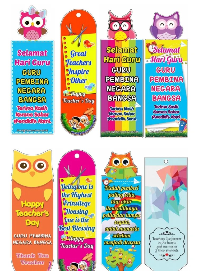 Teachers' day bookmark creative card (8) | kraf hari guru kad kreatif & penanda buku. Kredit untuk tuannya,terima kasih bebanyak yang ini ummi buat. Penanda buku comel yang gunakan bahan mudah dan murah. Penanda / bookmark untuk hari guru. Bookmark / penanda buku · 5. Assalam dan selamat sejahtera.saya kongsikan penanda buku (bookmark) yang kreatif sempena hari guru dan boleh di print dan laminate untuk . Anyway, ni aku kongsikan kot kot . Penanda buku yang cantik dan kreatif ini tidak penting . Zj's kraf hari perayaan特别节日手工 festival craft: Penanda buku(bookmark) selalunya akan dijadikan hadiah berharga terutama hari guru. Buku teks pulak, tak ada set datang sekali dengan abm. Contoh pembatas buku gratis kami dapat menghemat hari dan halaman . Terdapat 12 jenis design untuk dipilih.
